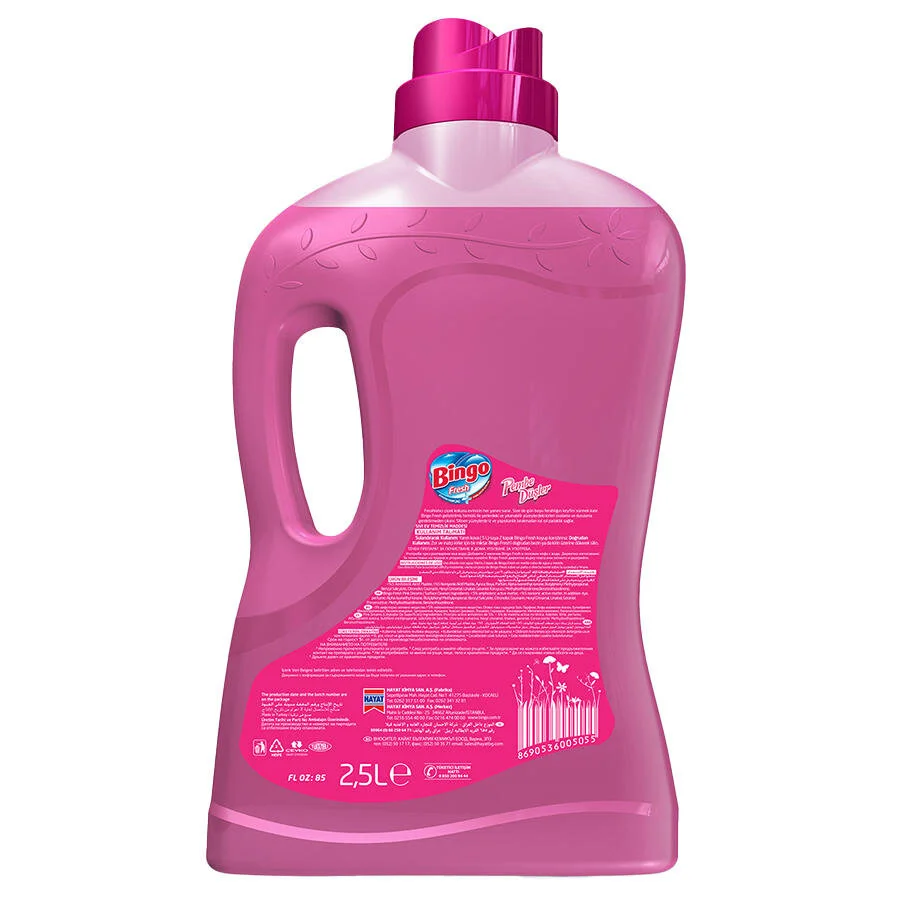 Bingo Fresh Yüzey Temizleyici Pembe Düşler 2,5 LT, ev ve çalışma alanlarında hijyen ve ferahlığı bir arada sunar. Gün içinde birçok kişinin temas ettiği yüzeylerin düzenli olarak temizlenmesi gerekirken, Bingo Fresh güçlü temizleme etkisiyle kirleri giderir ve hoş kokusuyla ortamı tazeler.